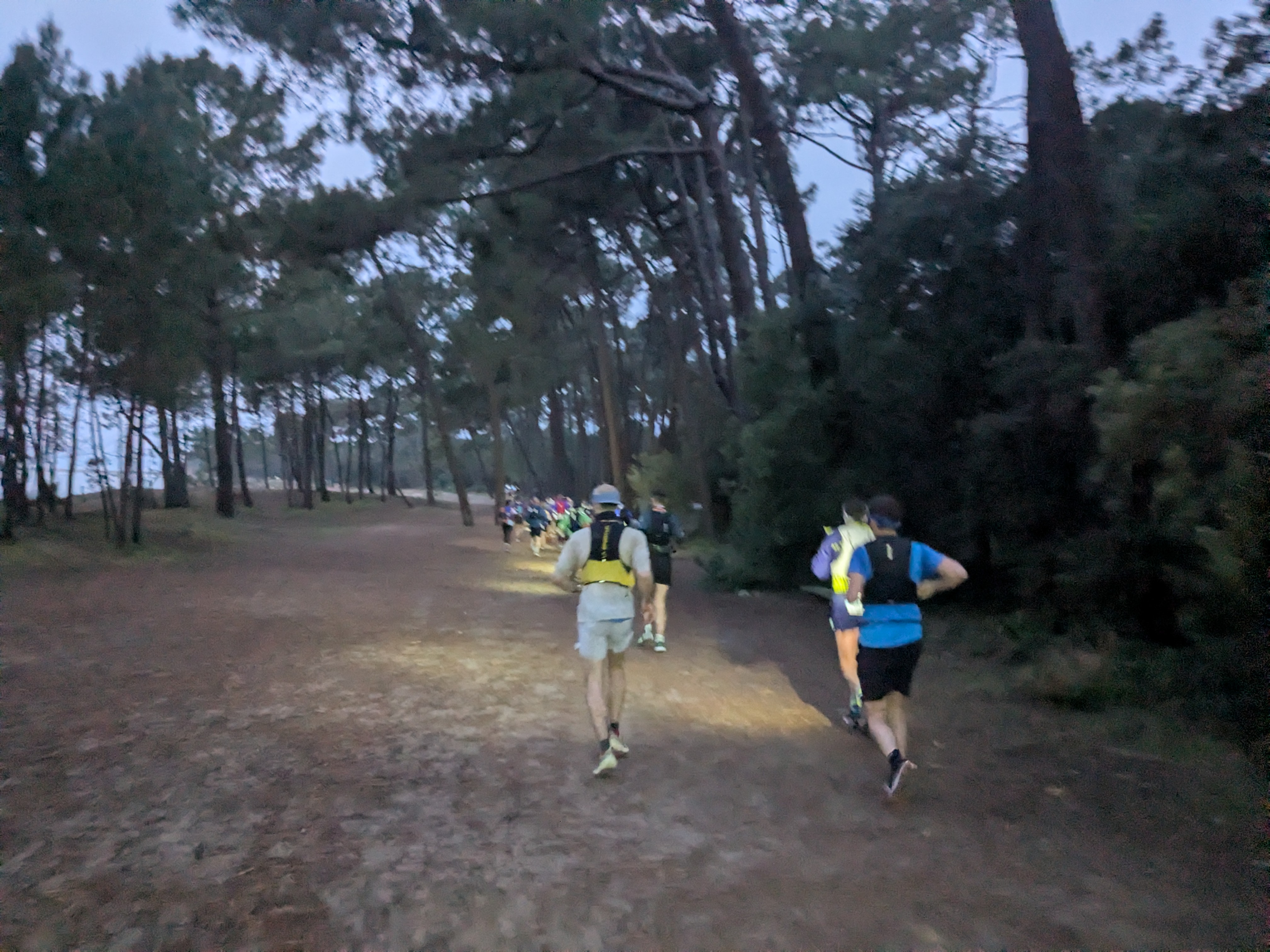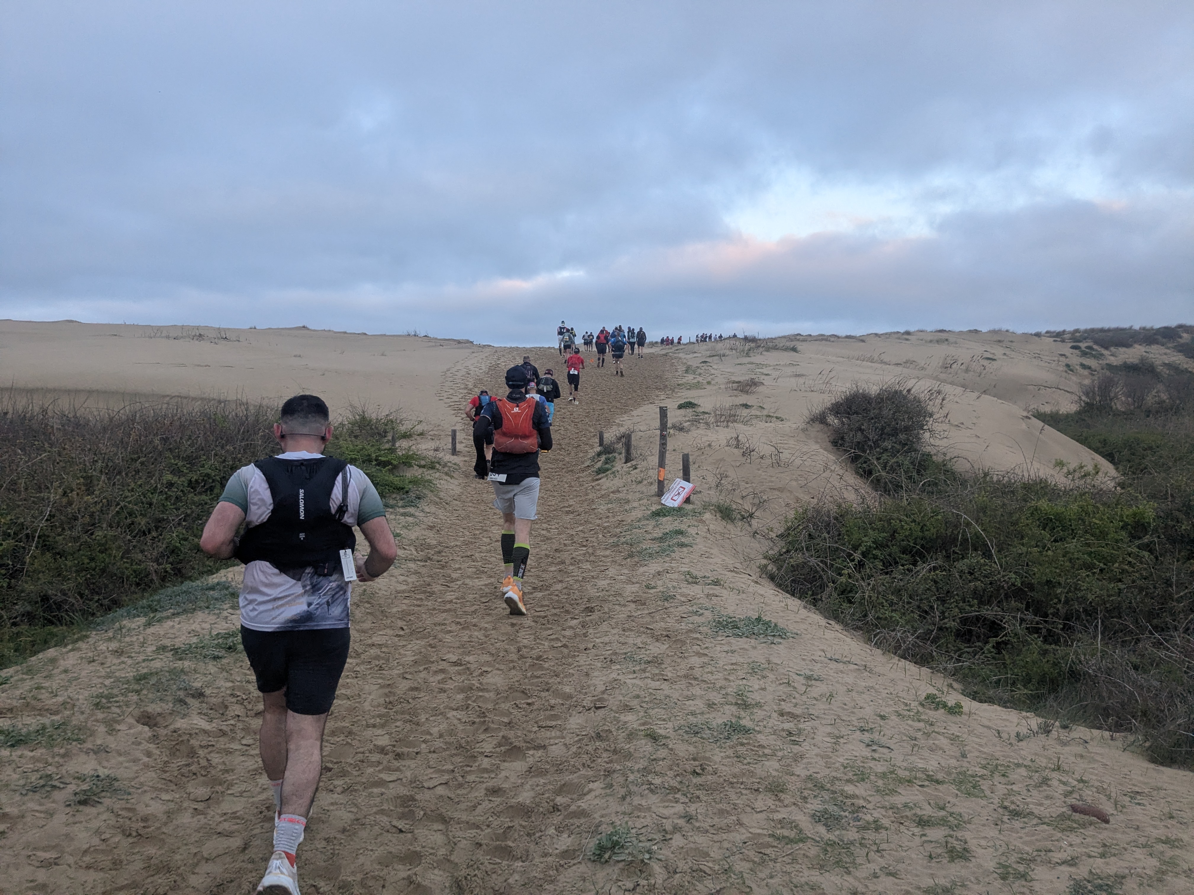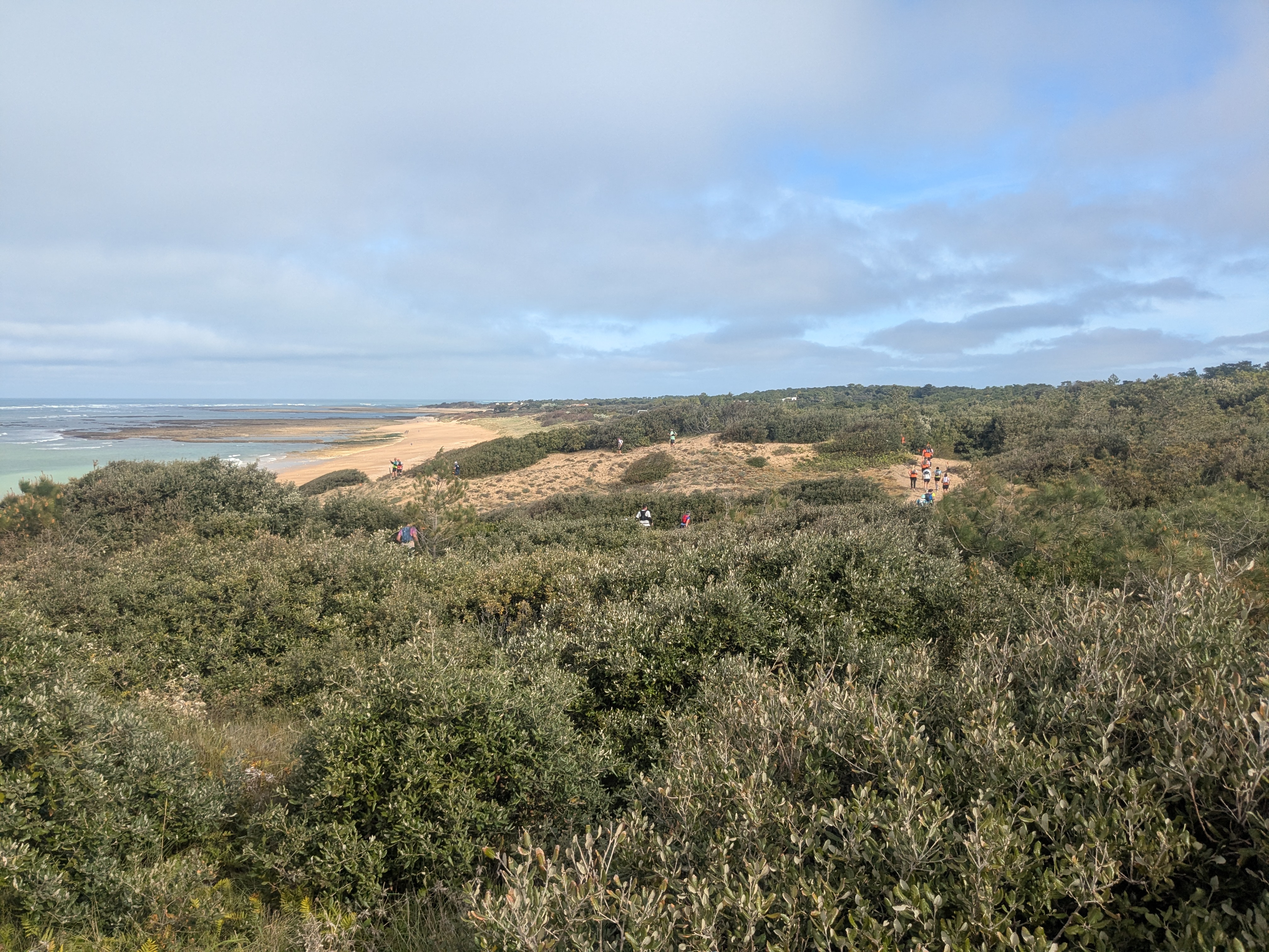 Pas mal de sable mou et épais, de la dune, du sous-bois, des chemins divers et variés et quelques portions de goudron. 700m de D+ annoncés.