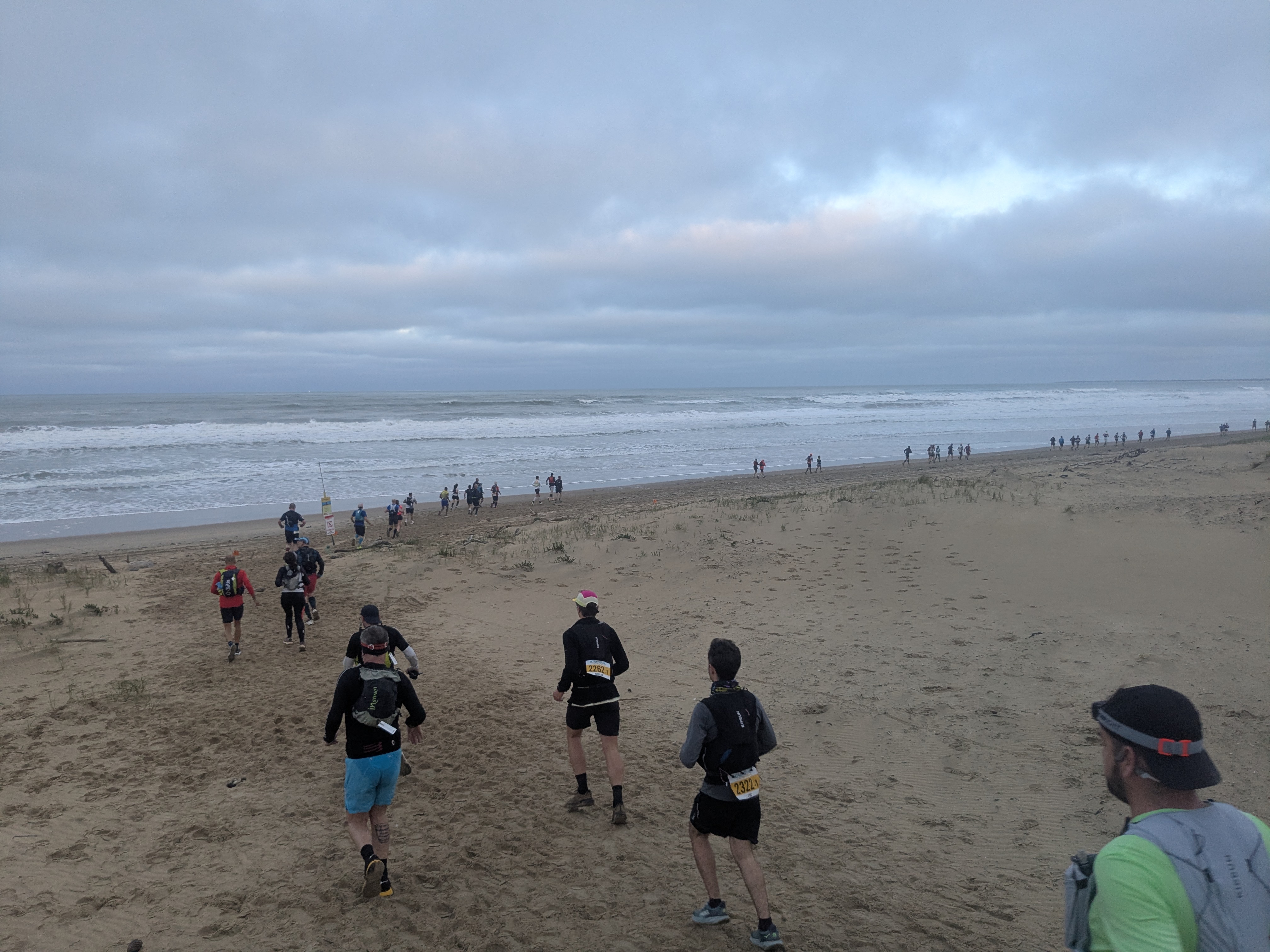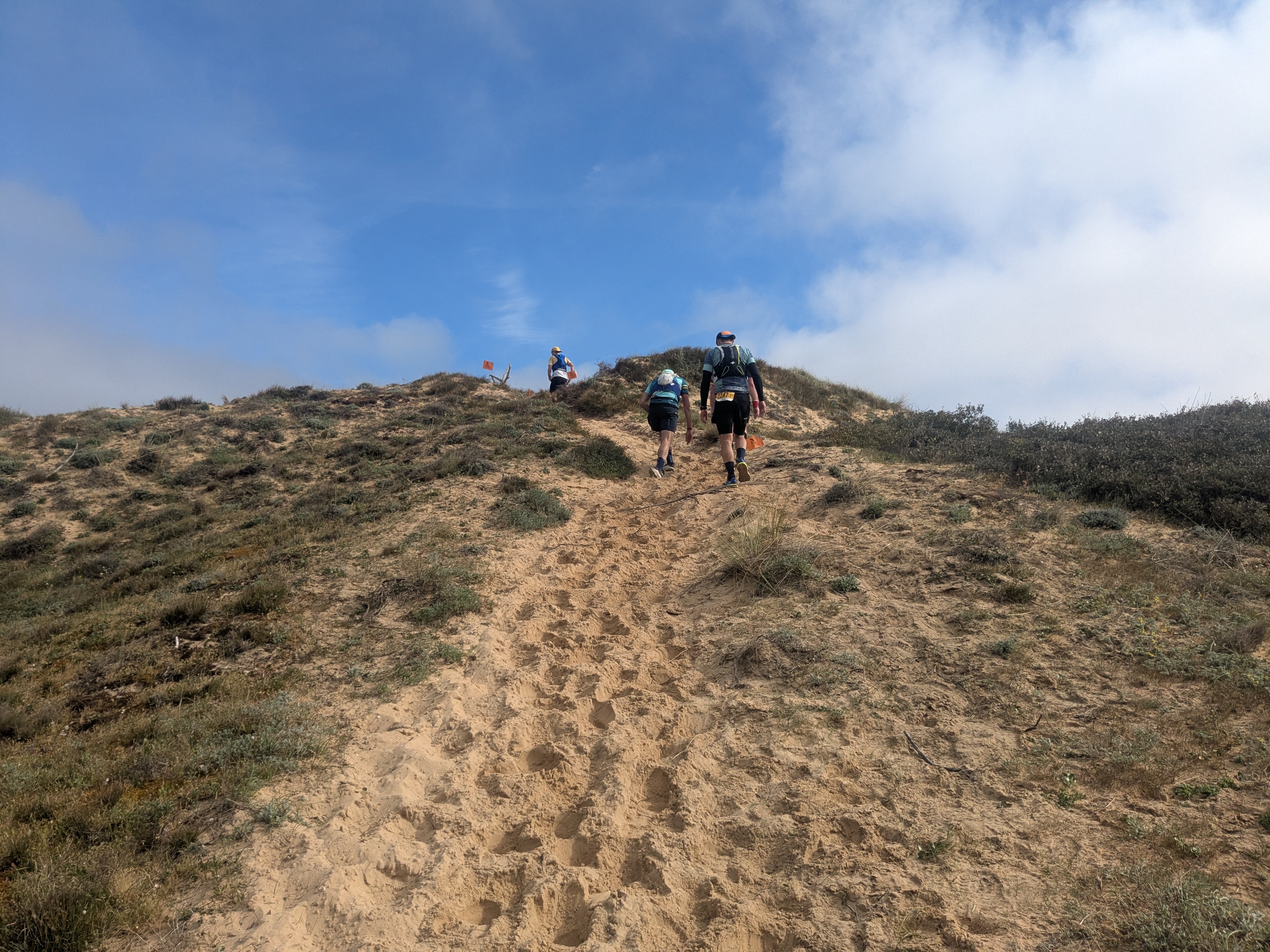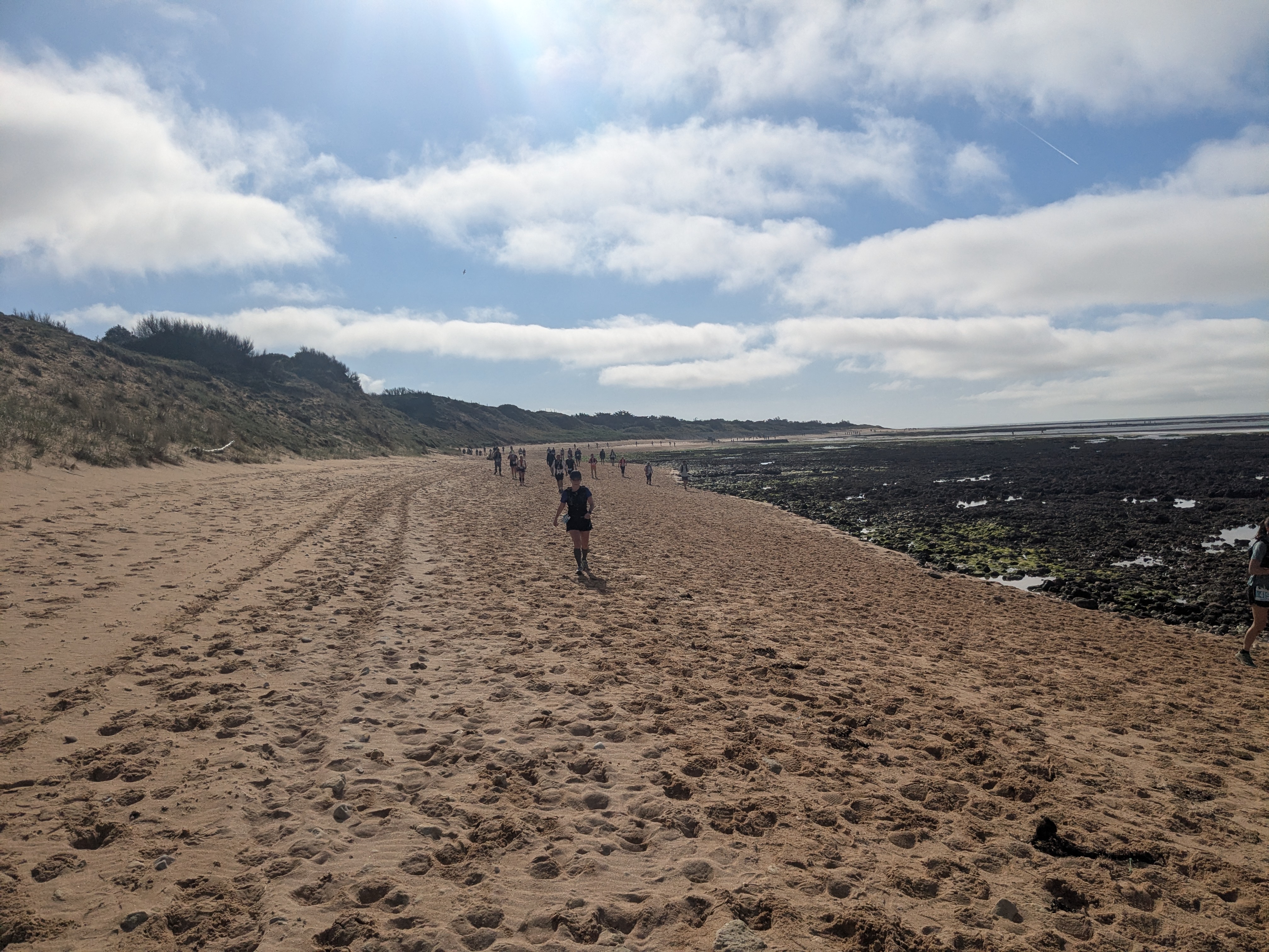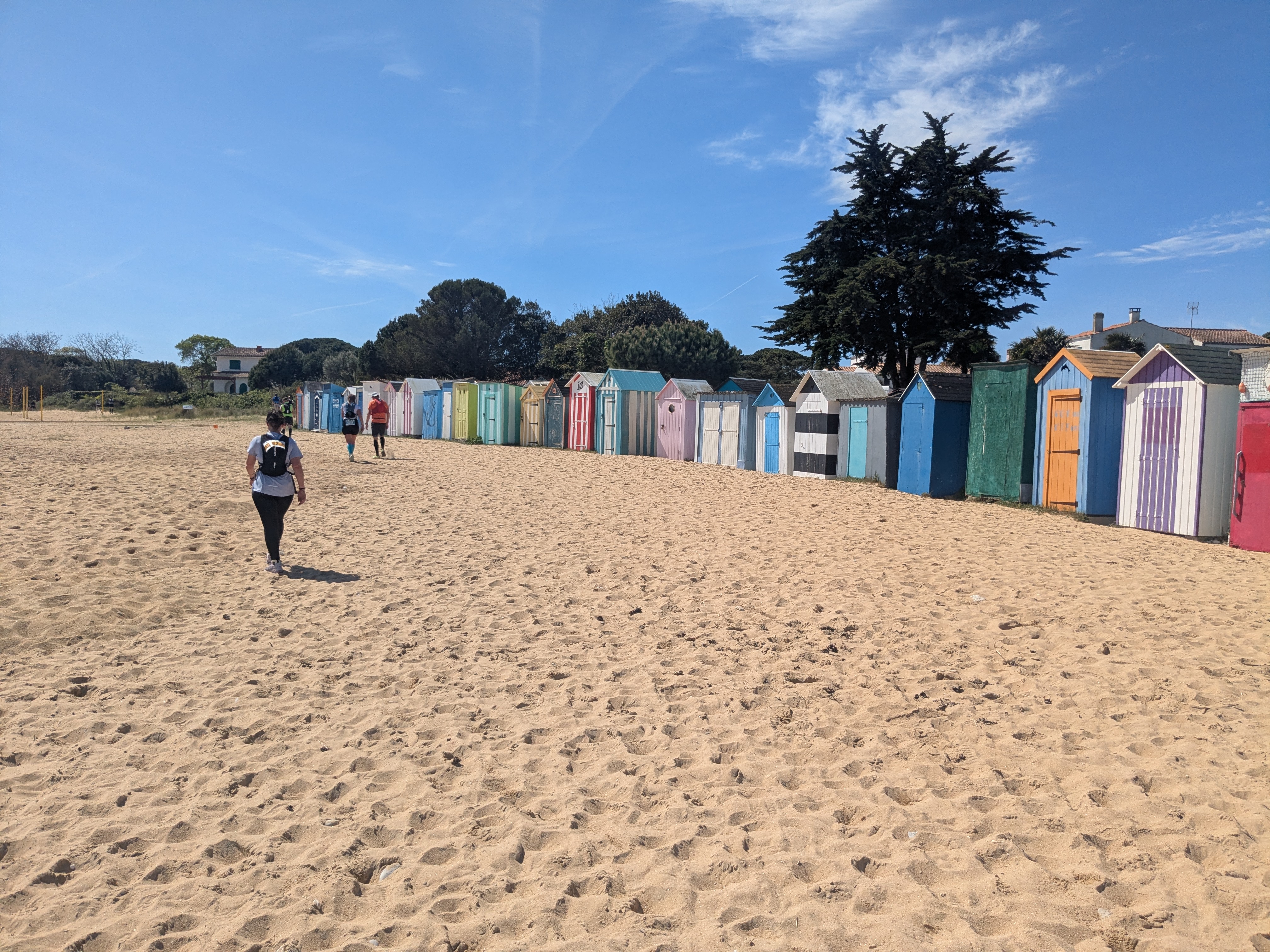 Pas mal de sable mou et épais, de la dune, du sous-bois, des chemins divers et variés et quelques portions de goudron. 700m de D+ annoncés.